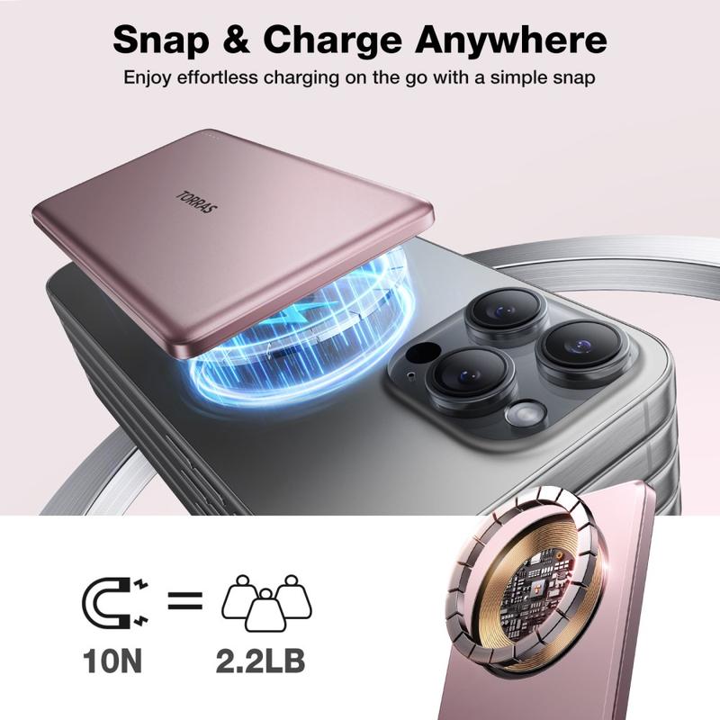 Torras MiniMag Pocket-Thin MagSafe Power Bank 5000mAh - Fornecimento de energia 3.0, porta USB-C