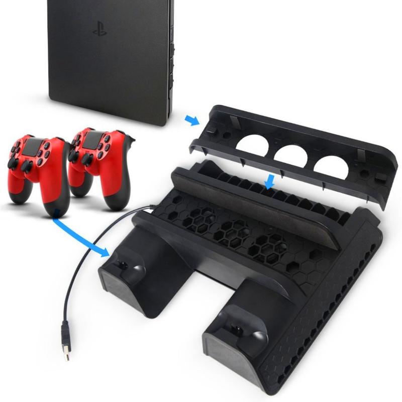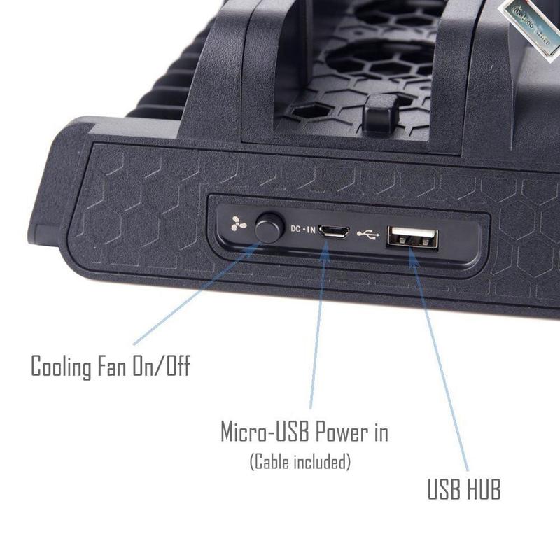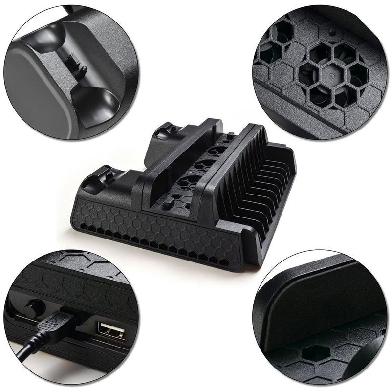 Ventoinhas de arrefecimento: Este suporte vertical tem ventoinhas incorporadas para dissipar o calor da sua consola PlayStation 4 / Slim, mantendo-a funcional