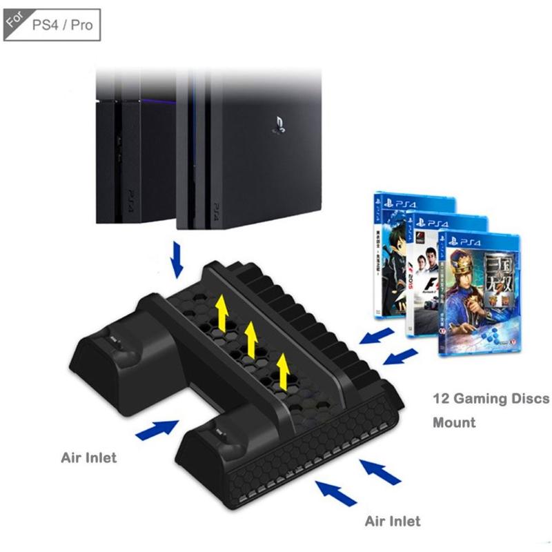 TP4-882 Suporte vertical com ventoinha de arrefecimento Estação de carregamento dupla do controlador para Sony Playstation PS4/PS4 Slim/PS4 Pro