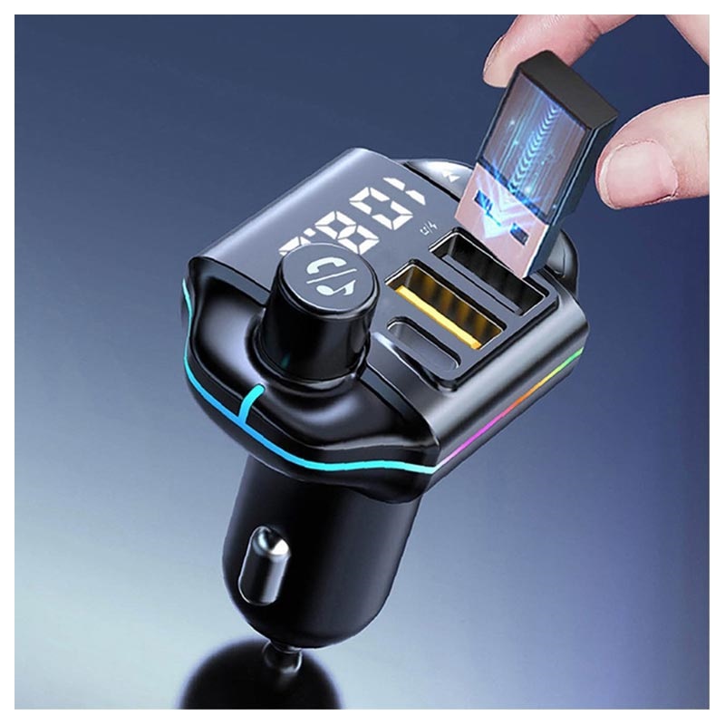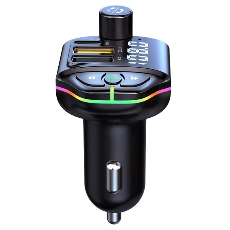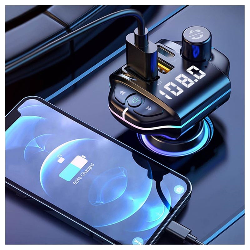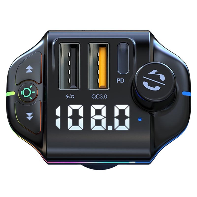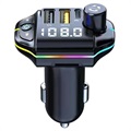 Transmissor FM Bluetooth / Carregador Rápido de Carro RGB ZTB-A10 - Bluetooth 5.0, USB-C PD, 2x USB-A, QC3.0, 20W