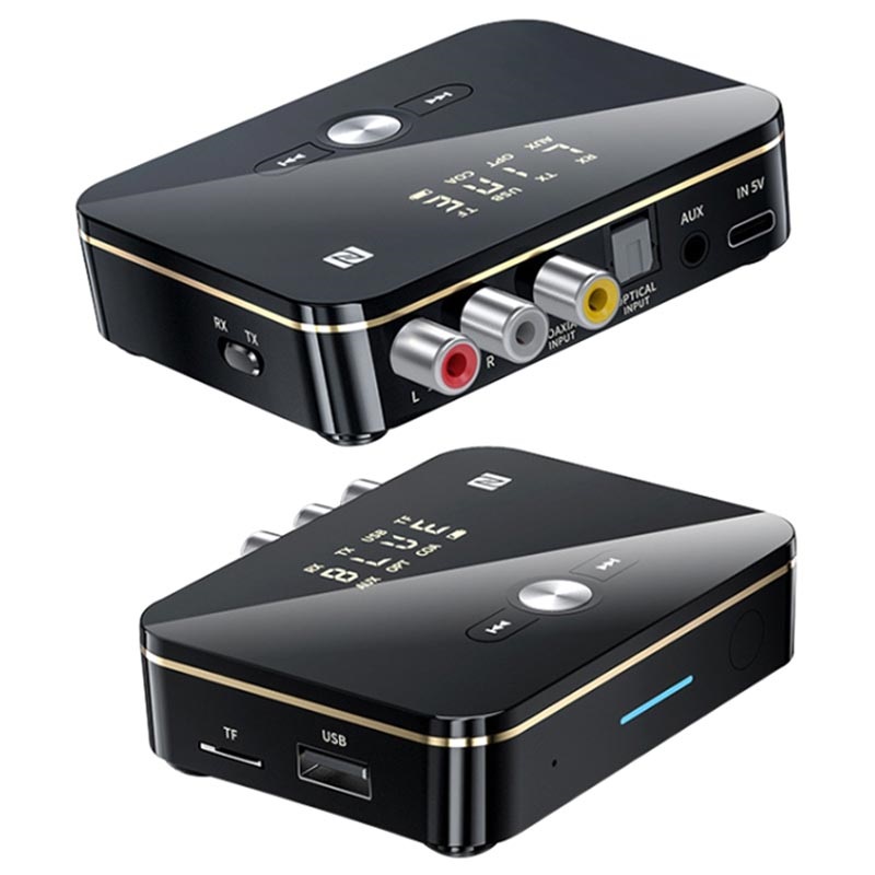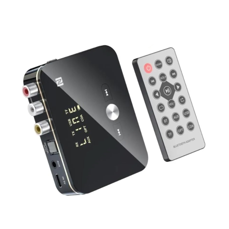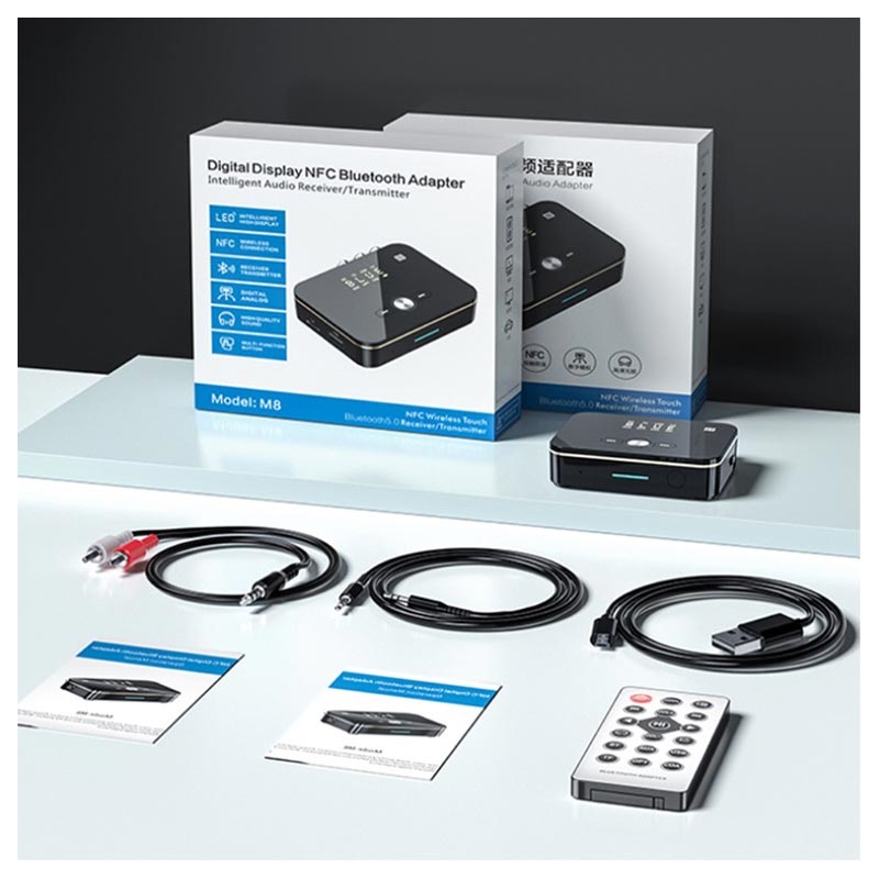 Transmissor / Recetor Bluetooth 5.0 de Áudio com Controlo Remoto M8 - AUX, RCA, Coaxial, Ótico, USB, cartão TF, NFC, 500mAh