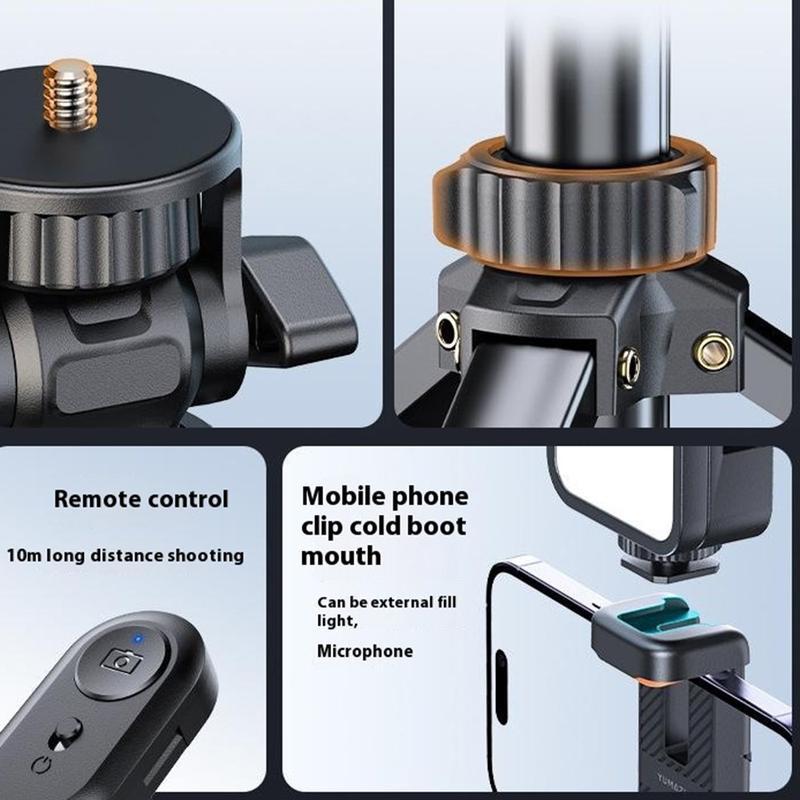 Tripé e bastão para selfies portátil T01 - alcance de 1.8m, carga útil de 3 kg, estúdio móvel tudo-em-um