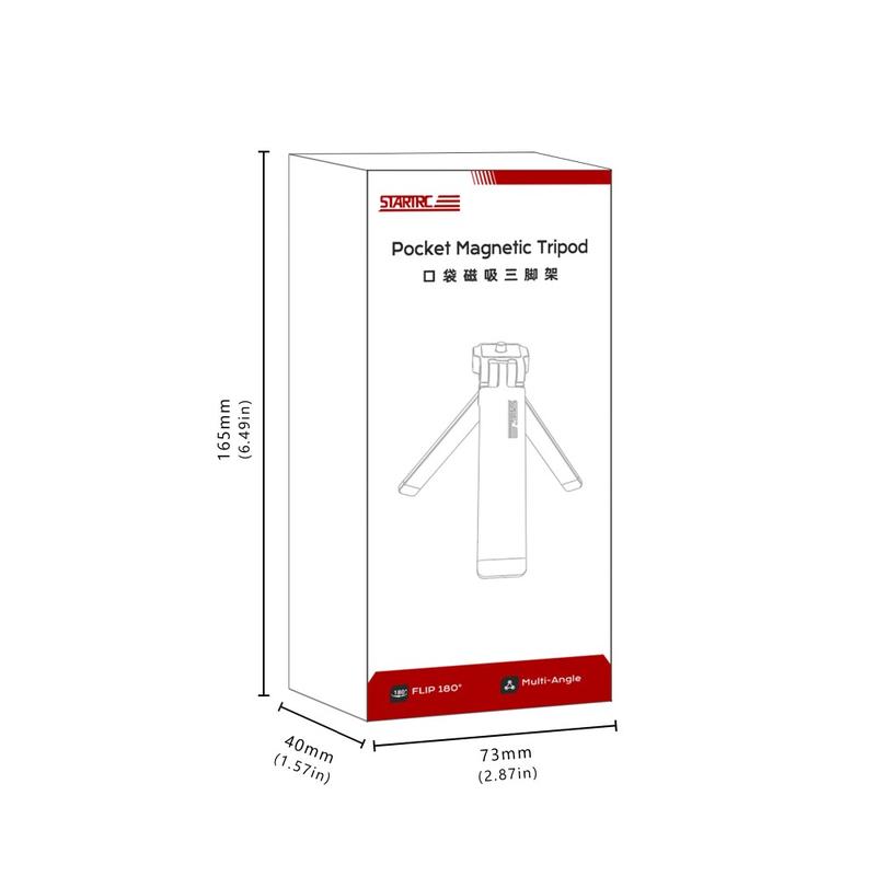 O tripé magnético STARTRC apresenta um design fino e dobrável que cabe facilmente no seu bolso ou bolsa. Quando dobrado, mede apenas 170 x 35,8 x 12,5 mm, tornando-o ideal para viagens, fotografias ao ar livre e transporte diário.