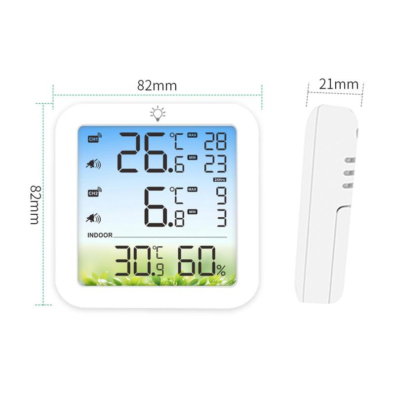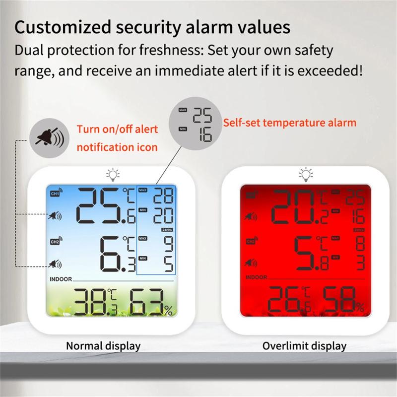 TS-8082 Termómetro e higrómetro sem fios de dois canais - Monitor de temperatura para frigoríficos e congeladores com 2 sensores e alarme