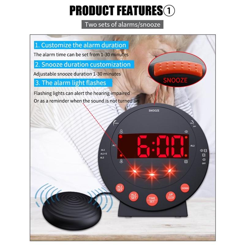 Acorde a horas todas as manhãs com o TS-BC600 Loud Vibrating Alarm Clock. Concebido para servir uma vasta gama de utilizadores - incluindo pessoas com sono pesado, surdos e deficientes auditivos - este relógio oferece um alerta sonoro robusto e uma função de vibração forte. Com um visor digital de 12/24 horas de fácil utilização, pode facilmente definir e ver as horas num relance. O seu design compacto adapta-se perfeitamente a qualquer mesa de cabeceira, garantindo uma experiência sem complicações para todos.