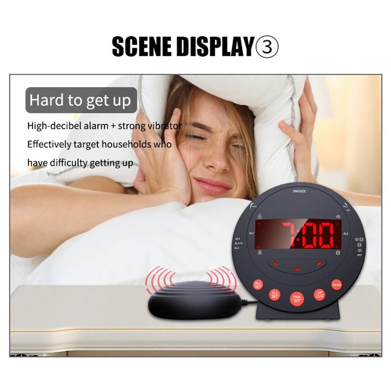 TS-BC600 Despertador vibratório alto com visor de 12/24 horas para surdos, deficientes auditivos e idosos - 3 pilhas AAA (NÃO incluídas)