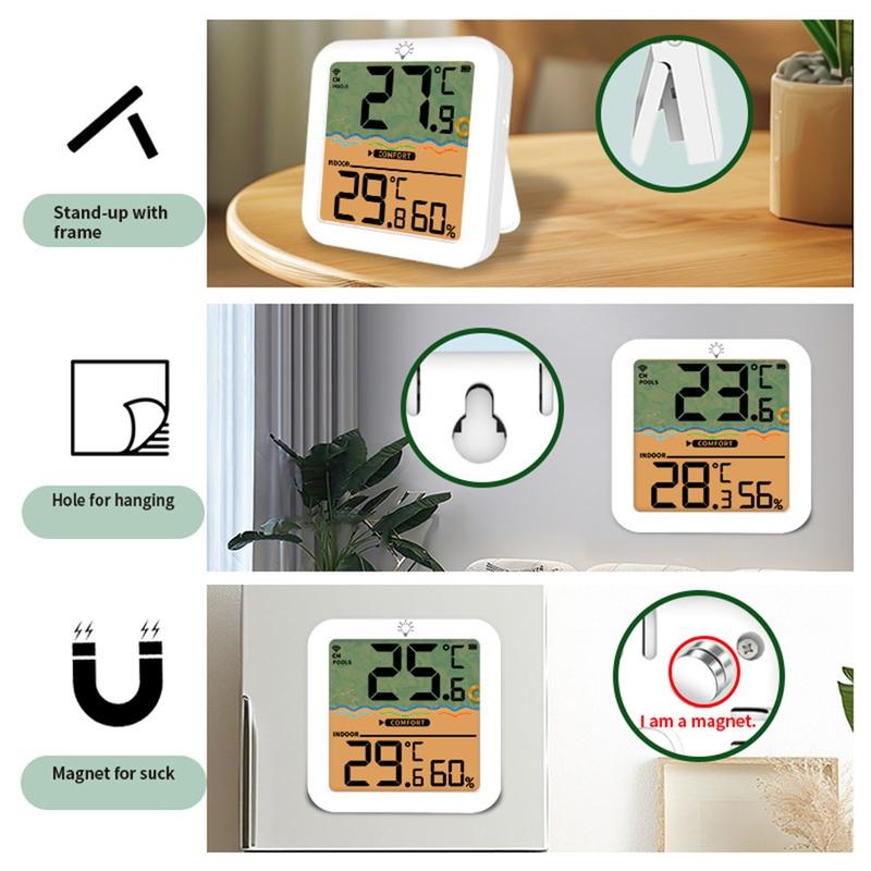 O transmissor flutuante IP68 fica diretamente na água para leituras precisas, enquanto o recetor interior mostra a temperatura da piscina, a temperatura interior e a humidade num ecrã nítido. Com um alcance sem fios de até 100 m em espaço aberto, memória de máximo/mínimo de 24 horas e opções de montagem práticas, é uma escolha inteligente para piscinas, banheiras de hidromassagem, spas e instalações de água no jardim.