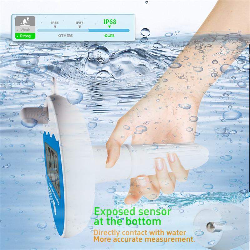 TS-PL07 Termómetro sem fios para piscina - Medidor digital flutuante da temperatura da água com classificação IP68, receptor para interior e indicador de humidade