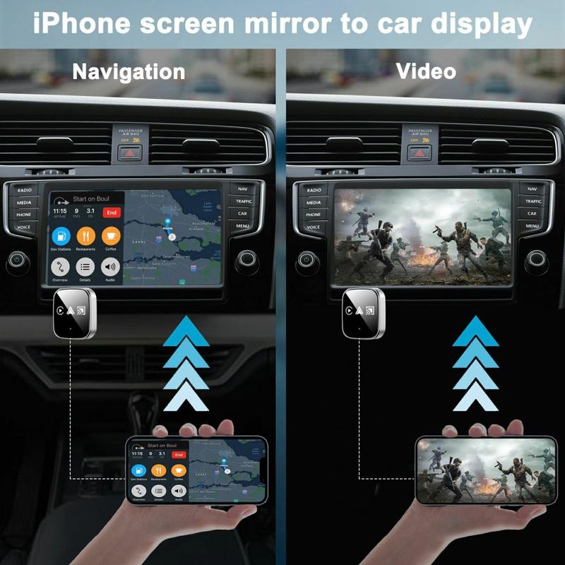 Os adaptadores CarPlay e Android Auto sem fios utilizam normalmente Bluetooth para o emparelhamento inicial e Wi-Fi para a ligação de dados de alta largura de banda, razão pela qual o Wi-Fi de banda dupla pode melhorar a estabilidade. Muitos sistemas de fábrica suportam controlos totais do ecrã tátil e do volante através do adaptador, para que a experiência de condução permaneça familiar — apenas sem o cabo.