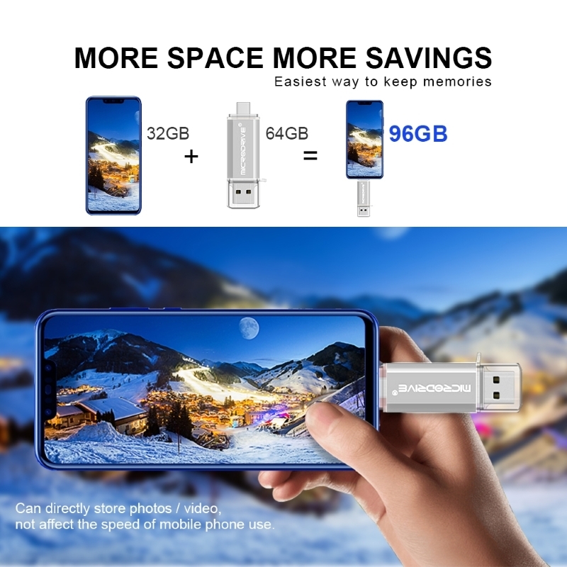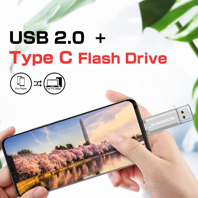 Unidade Flash MICRODRIVE 64GB 2 em 1 USB 2.0 / USB-C - Armazenamento de dados versátil para telemóveis, computadores portáteis e muito mais