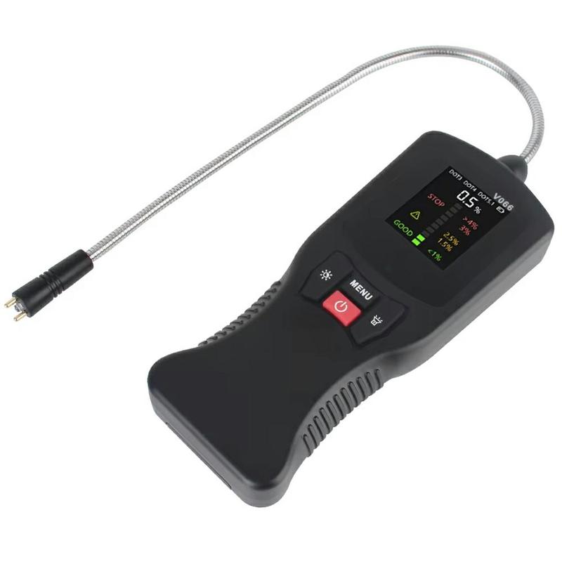Saiba quando deve mudar o líquido dos travões antes que o desempenho diminua. O compacto aparelho de teste V066 mede o teor de água nos fluidos DOT3, DOT4 e DOT5.1 e apresenta resultados claros num ecrã a cores. Uma sonda durável e uma resposta rápida ajudam-no a tomar decisões rápidas e precisas na garagem, na oficina ou na entrada da garagem.