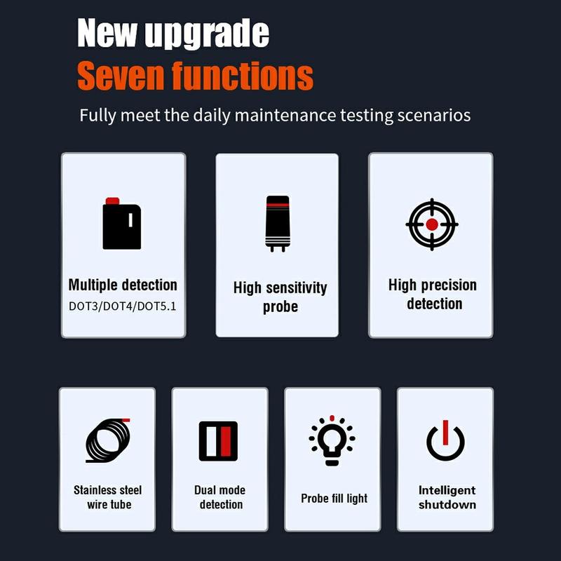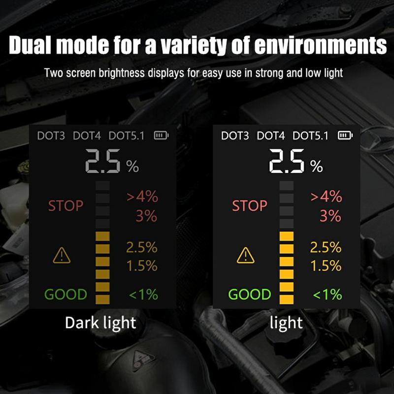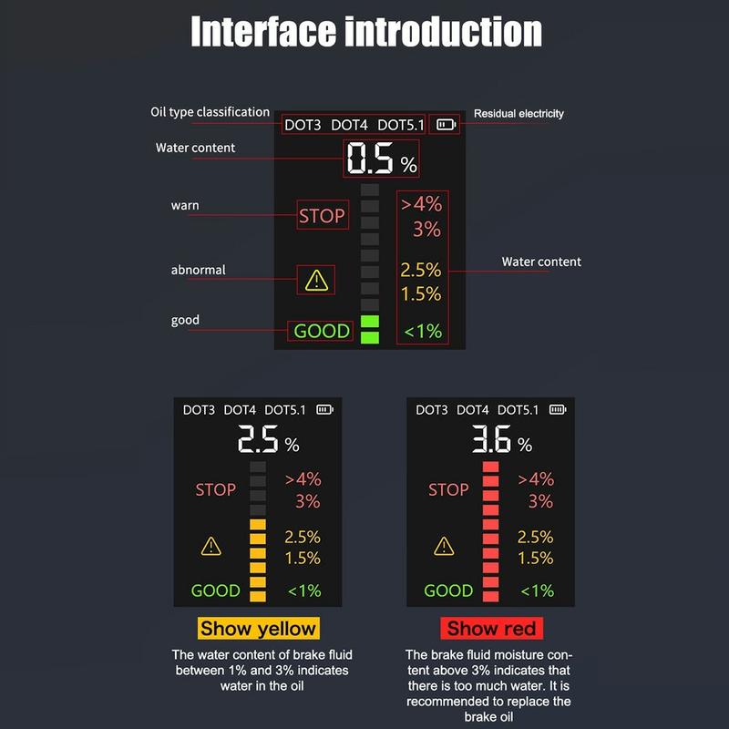 - Verificação rápida e precisa do teor de água para fluidos de travões DOT3, DOT4 e DOT5.1