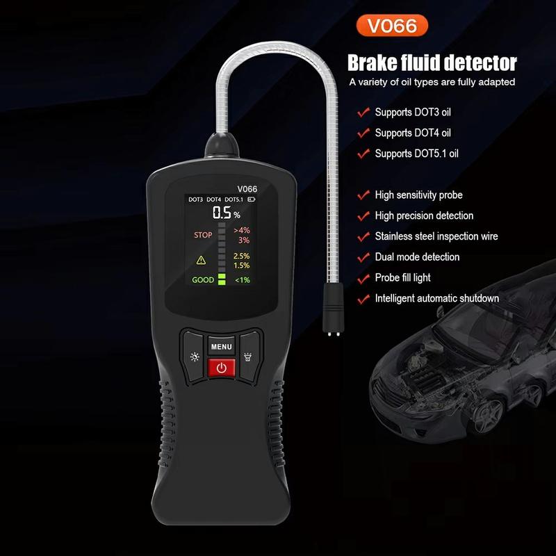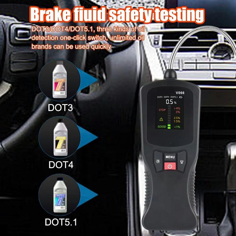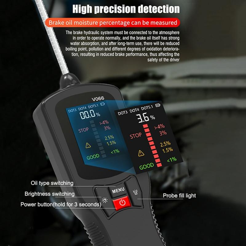 V066 Verificador do fluido dos travões para diagnóstico automóvel - DOT3 DOT4 DOT5.1 Verificador do teor de água com ecrã a cores e sonda de alta sensibilidade