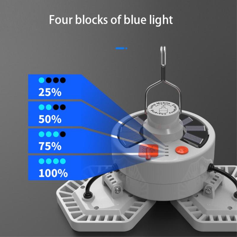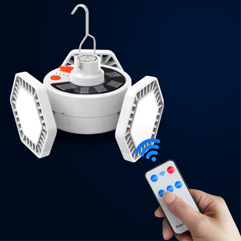 Lanterna solar de campismo V126 - Luz LED dobrável de 3 folhas e Power Bank, USB / Recarga Solar, Controlo Remoto (126 LEDs)