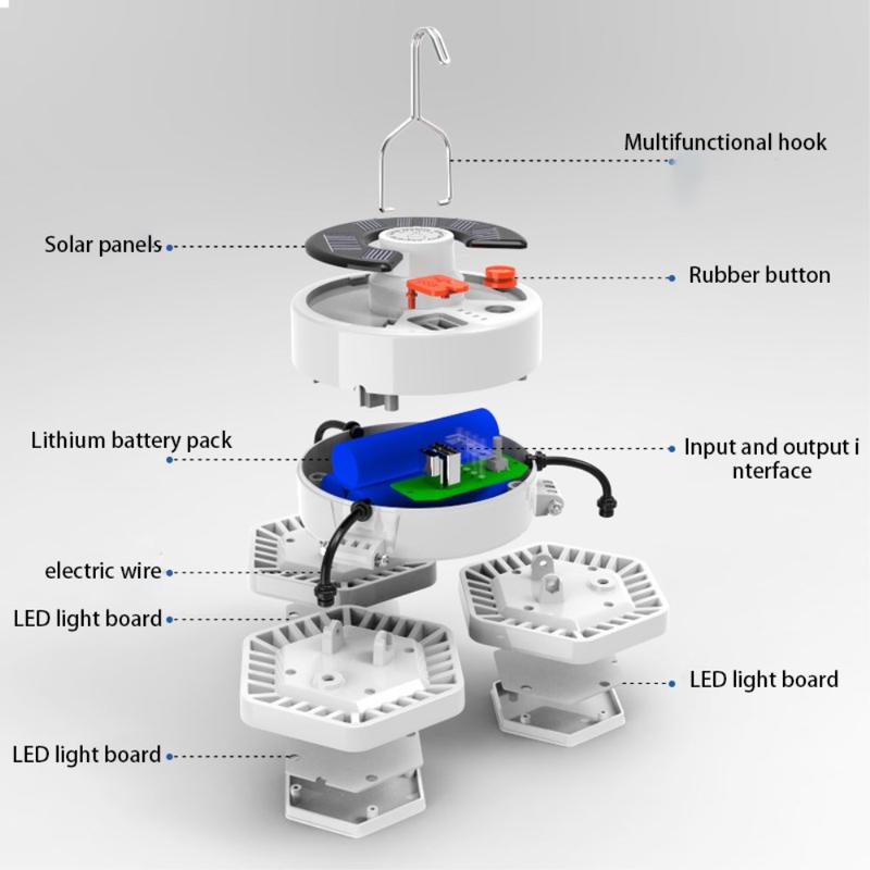 Ilumine parques de campismo, garagens ou kits de emergência com a V126: uma lâmpada inteligente de três painéis que se desdobra num farol de 360°, mas que pode ser embalada para viagem. Alimentada por três células 18650, é recarregada a partir do sol ou de qualquer porta USB e funciona como um banco de energia para telemóvel. Um gancho para pendurar, LEDs ao nível da bateria e controlo remoto incluído tornam a iluminação mãos-livres fácil em interiores e exteriores.
