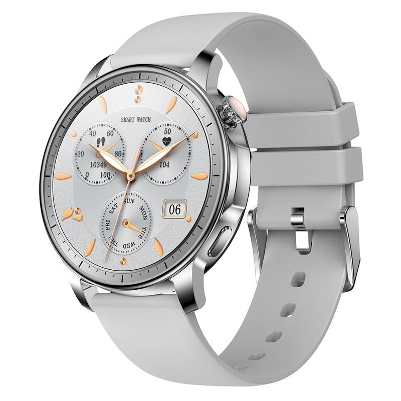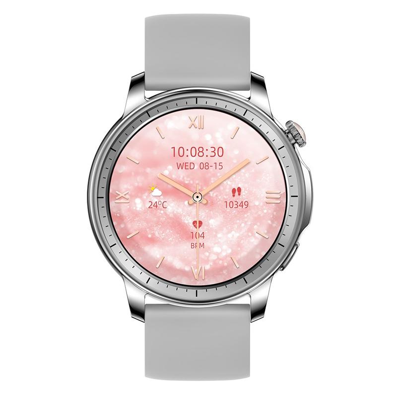 V65 Relógio inteligente com ecrã tátil AMOLED de 1,32 polegadas Monitor do ritmo cardíaco Pulseira desportiva para mulher, bracelete de silicone - Prata