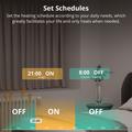 Multifuncional: Equipado com um bloqueio para crianças para evitar ajustes acidentais por parte de crianças, proteção contra congelamento para evitar que os tubos congelem e rebentem, e suporta 6 meses de consulta de dados históricos, permitindo decisões informadas para programações de aquecimento com base em dados anteriores para um conforto e eficiência optimizados