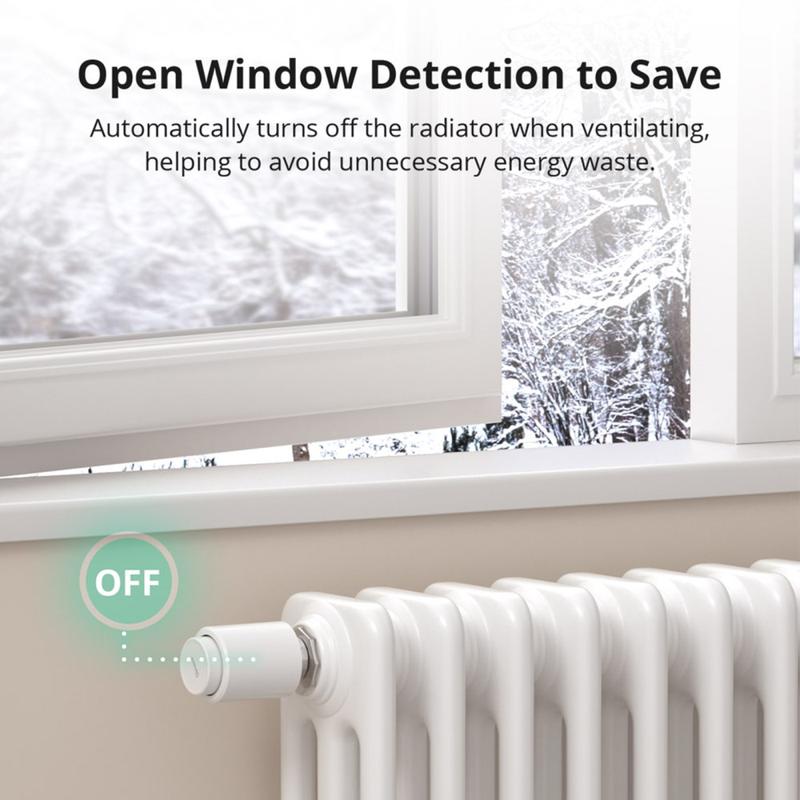 Deteção de janelas: Desliga automaticamente o radiador quando as janelas são abertas, evitando o desperdício desnecessário de energia e melhorando a eficiência energética