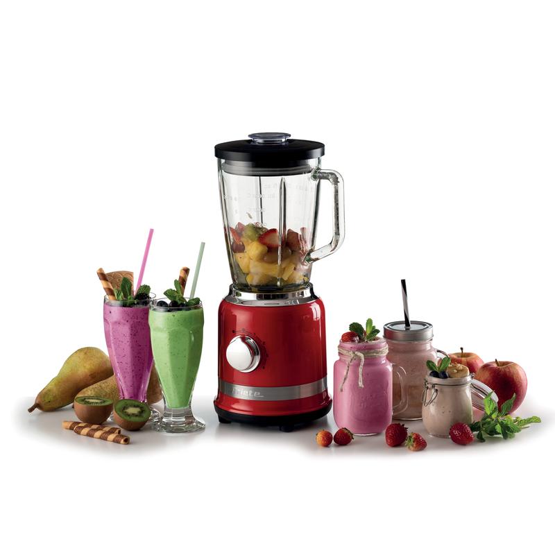O liquidificador Ariete Moderna com um copo de vidro de 1,5 L é o aparelho de cozinha ideal para criar uma variedade de bebidas e receitas. Com o seu potente motor de 1000 W e 4 lâminas de aço inoxidável, mistura sem esforço batidos, tritura gelo e faz puré de legumes. O liquidificador oferece 4 velocidades e uma função Pulse, permitindo-lhe personalizar a textura dos seus ingredientes. O copo de vidro é durável e prático, com uma escala de medição e uma tampa amovível para adicionar ingredientes a meio da mistura.