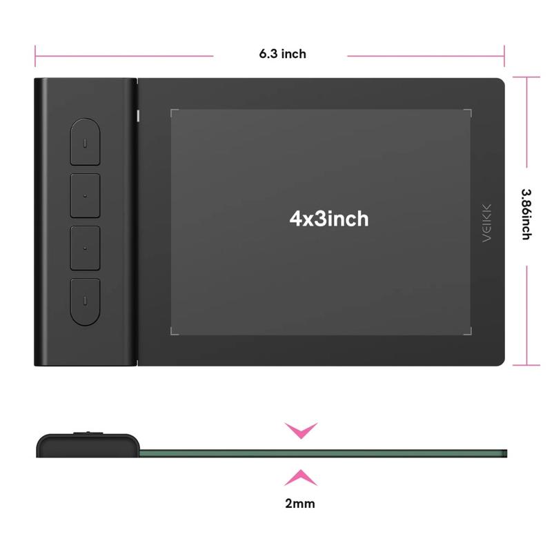 Ultrafina e leve, a mesa digitalizadora VEIKK Creator Pop VK430 mede apenas 2 mm de espessura e pesa apenas 84 gramas, com uma área ativa de 4 x 3 polegadas que não sobrecarrega o seu espaço de trabalho, tornando-a fácil de colocar numa mala de portátil ou mochila para uma portabilidade conveniente