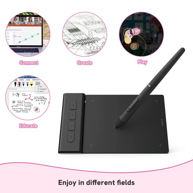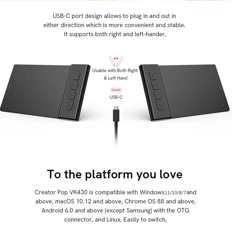 Alterne facilmente entre vários programas, uma vez que o Creator Pop VK430 é compatível com Windows 11/10/8/7, Mac OS X 10.12 ou superior, Chrome OS 88 e superior, Android 6.0 e superior com conetor OTG (excluindo Samsung) e Linux. É uma ferramenta ideal para o ensino em linha, a aprendizagem eletrónica, o trabalho remoto ou a assinatura de documentos, oferecendo compatibilidade com programas do Microsoft Office como o Word, PowerPoint, OneNote e Zoom. Descarregue o controlador do produto a partir do sítio Web da VEIKK para uma experiência melhorada