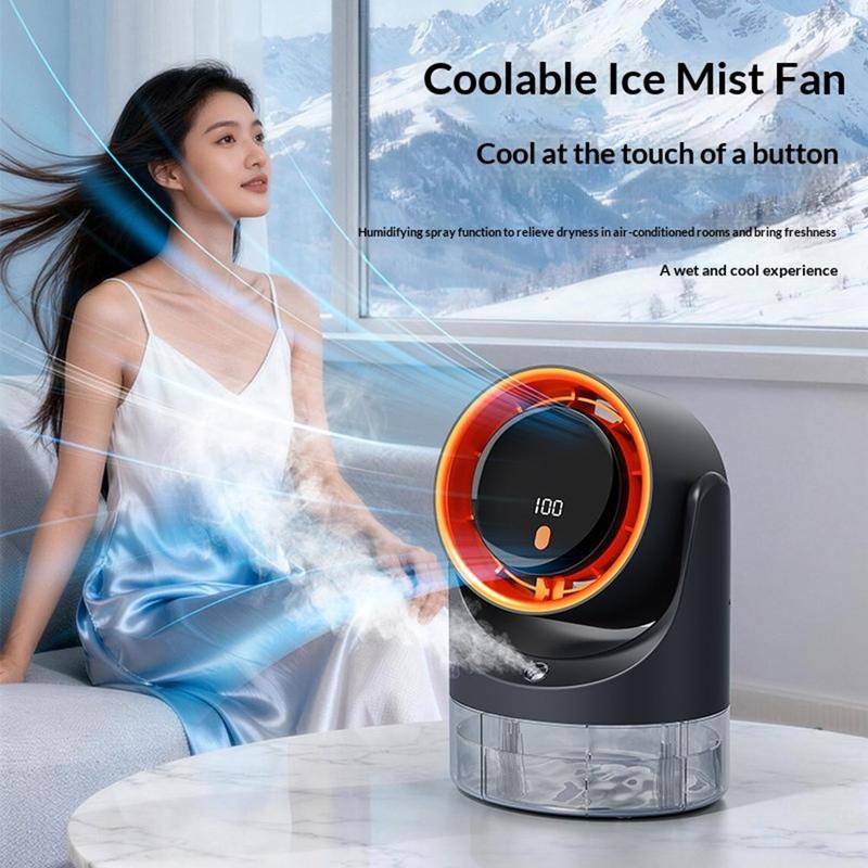 Ventilador de mesa portátil USB com nebulizador e depósito de água de 450ml - Ventilador humidificador com 100 velocidades para o escritório e para casa