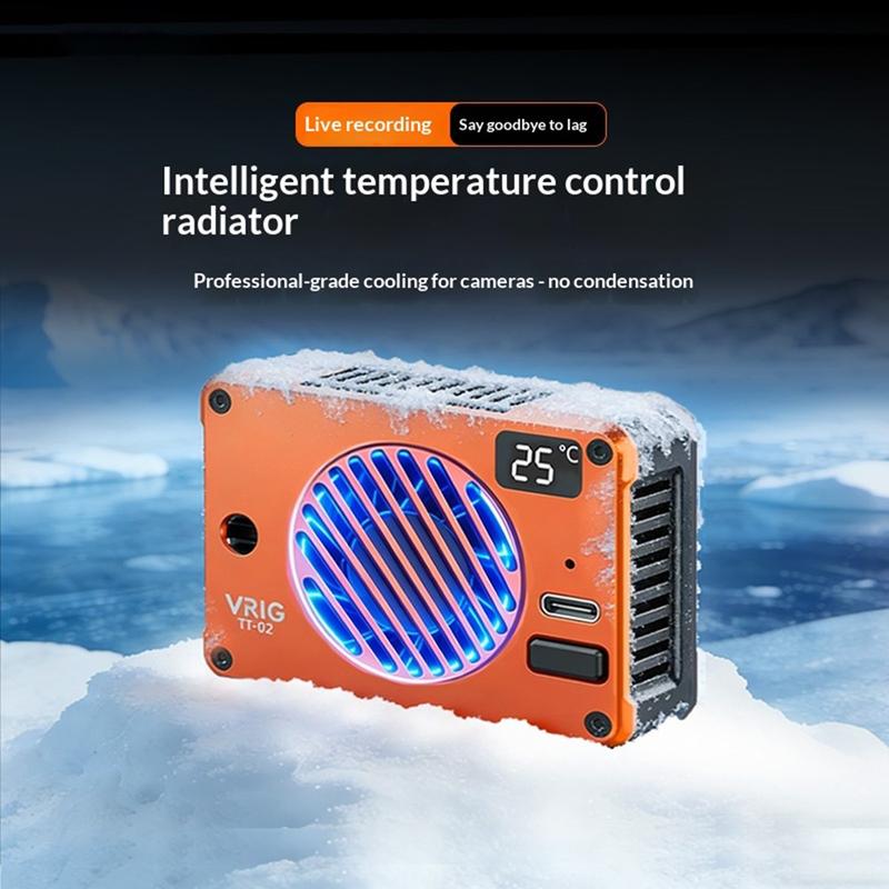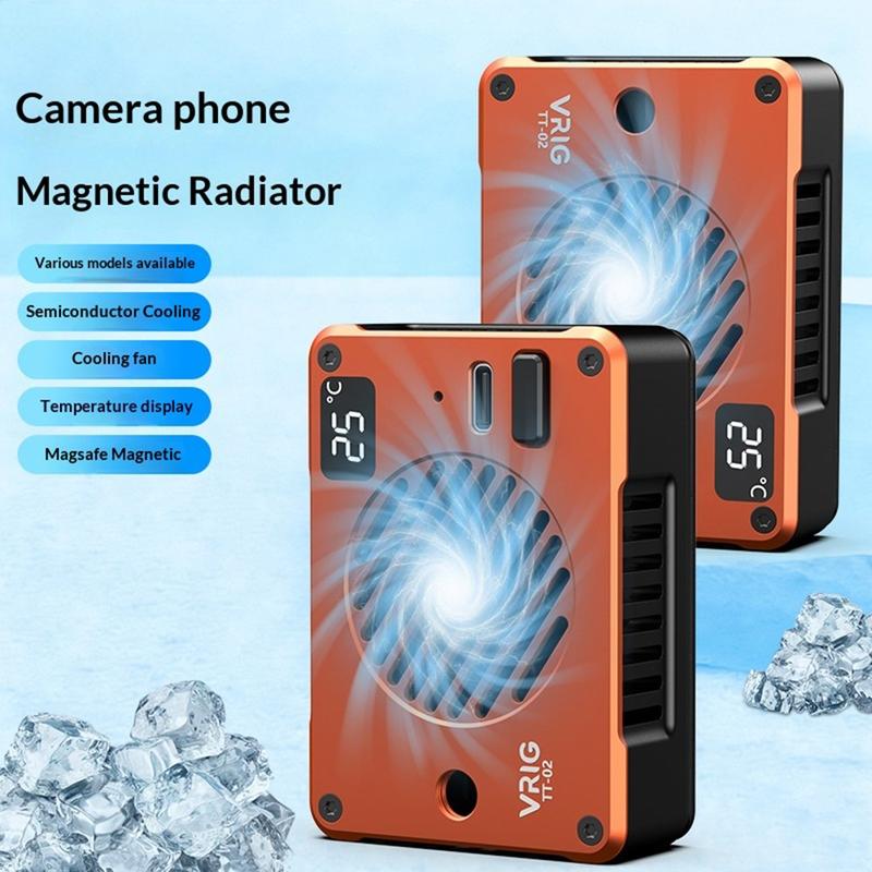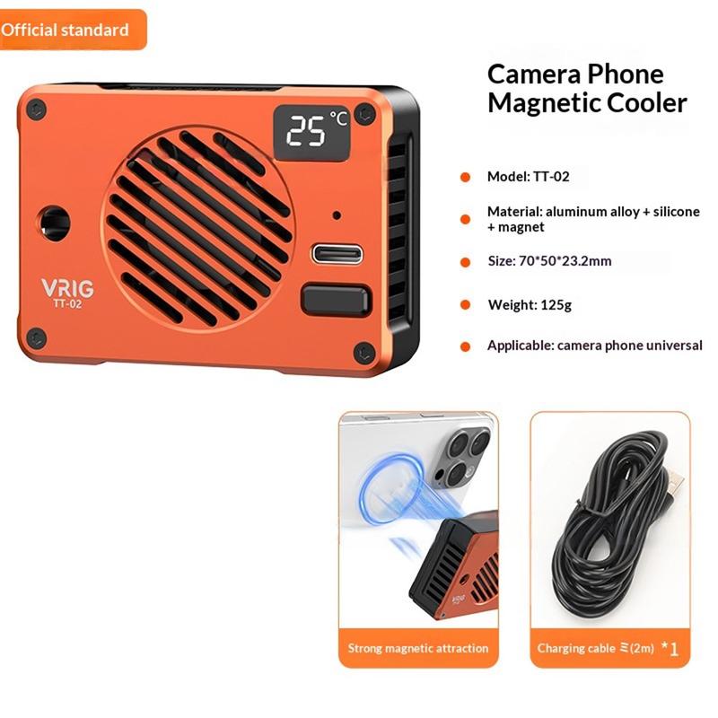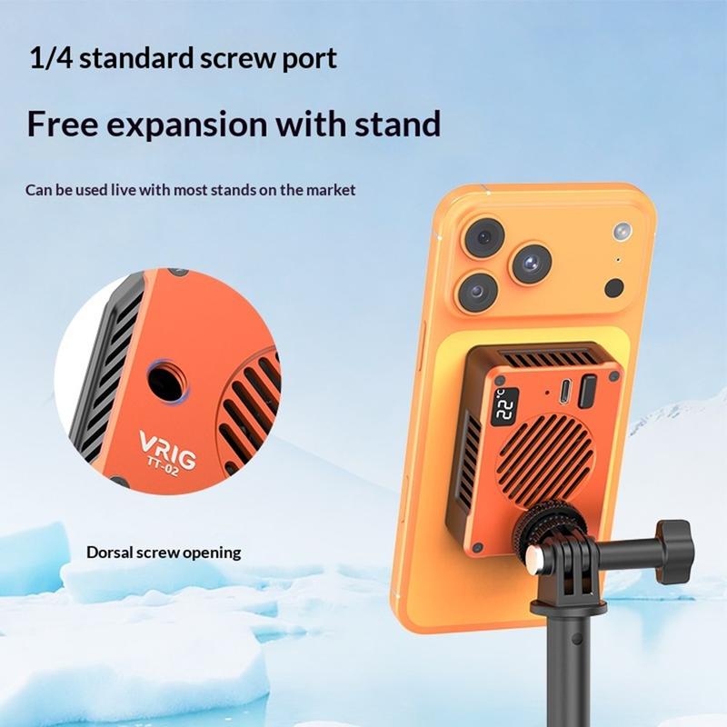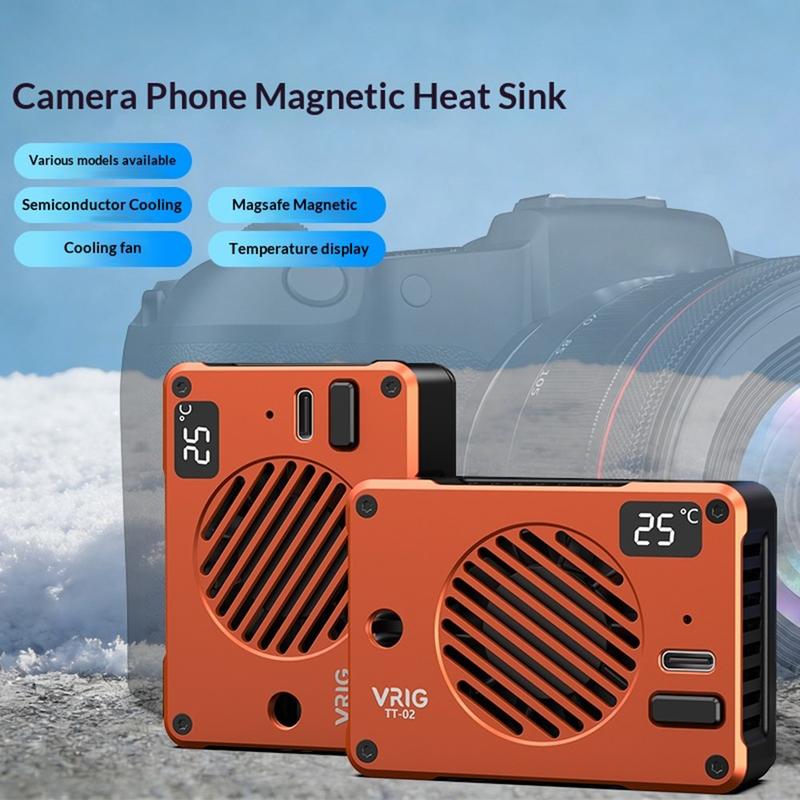 Mantenha o seu smartphone ou câmara fresco durante sessões intensivas de filmagem e gravação com o ventilador de refrigeração magnético VRIG TT-02. Concebido para videografia móvel, streaming e jogos, este refrigerador compacto utiliza tecnologia de refrigeração por semicondutores TEC, combinada com um ventilador de alta velocidade, para ajudar a reduzir rapidamente a temperatura do dispositivo e manter um desempenho estável.