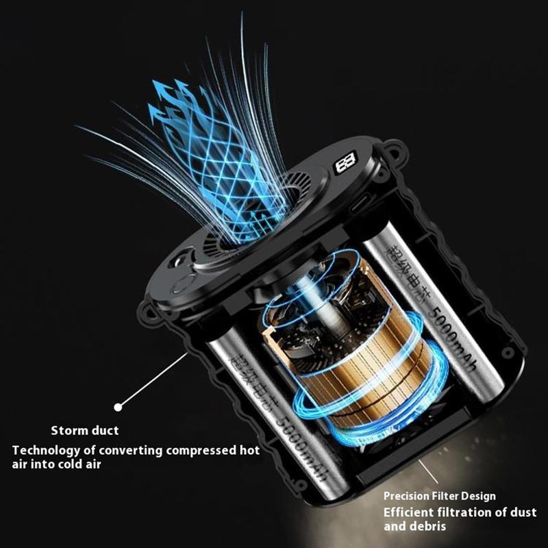 Mantenha-se mais fresco em movimento com o ventilador portátil G30, projetado para proporcionar um fluxo de ar sem usar as mãos durante o trabalho, atividades ao ar livre e viagens. Use-o no cinto para um resfriamento constante ou coloque-o no suporte incluído para uso em casa, no escritório ou em uma tenda. Um motor de turbina sem escovas de alta velocidade de 15.000 RPM proporciona um forte fluxo de ar, e 5 níveis de velocidade permitem ajustar a brisa para se adequar às mudanças de temperatura e intensidade da atividade.