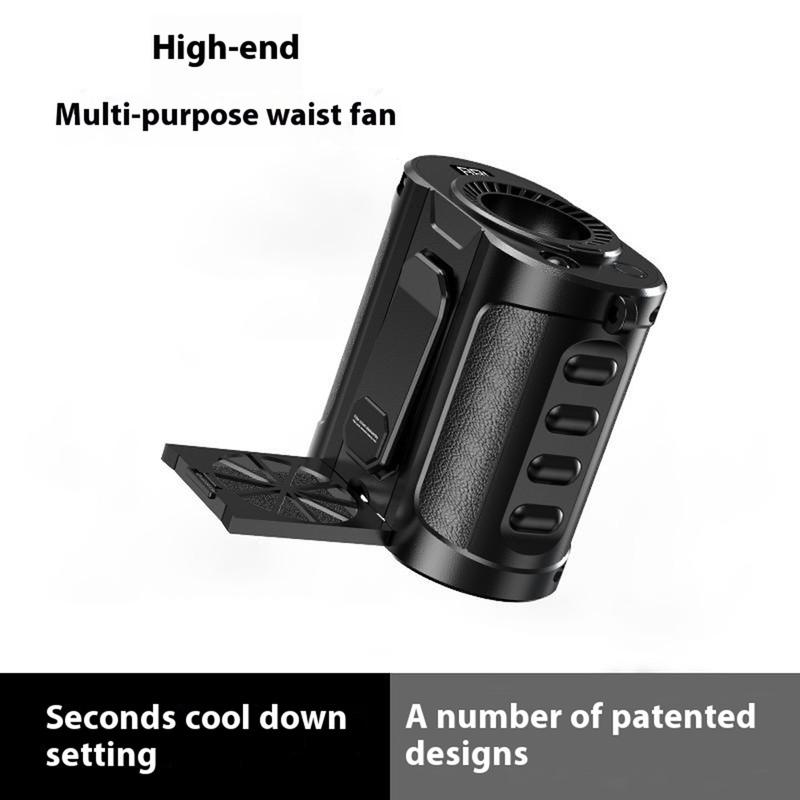 - Ventilador montado na cintura para refrigeração sem usar as mãos, também suporta uso em secretária com suporte