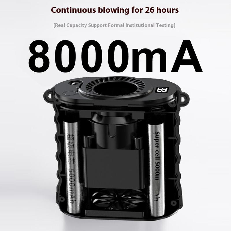 O G30 é uma ótima escolha se você deseja mais do que um ventilador portátil básico. Você obtém um suporte para a cintura que deixa as mãos livres, um suporte de mesa, uma bateria grande de 8000 mAh e um potente motor de 15000 RPM com 5 níveis de velocidade. A lanterna LED e a saída de banco de energia adicionadas tornam-no ainda mais útil para viagens e emergências, proporcionando refrigeração e energia de reserva em um dispositivo compacto.