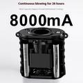 Concebido para dias longos, o G30 inclui uma bateria recarregável de 8000 mAh e também pode funcionar como um carregador portátil através da sua saída USB, proporcionando-lhe um carregamento de emergência para o telemóvel quando necessário. Uma lanterna LED de alta potência acrescenta praticidade extra para passeios noturnos, acampamentos ou falhas de energia, tornando este ventilador um gadget multifuncional útil para o verão e a vida ao ar livre.