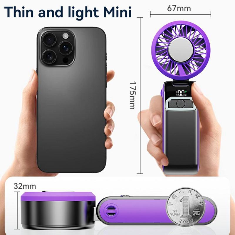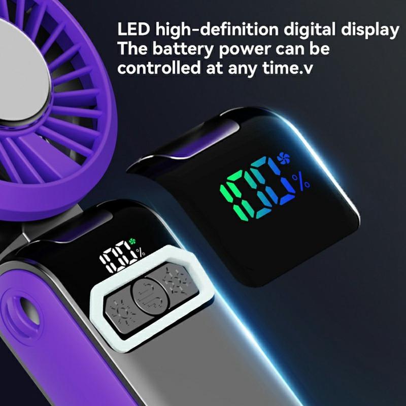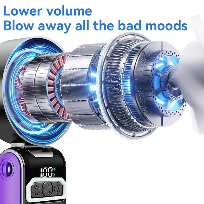 Ventilador portátil S2 - Ventilador de bolso recarregável com 100 velocidades, ecrã LED e design dobrável 3 em 1