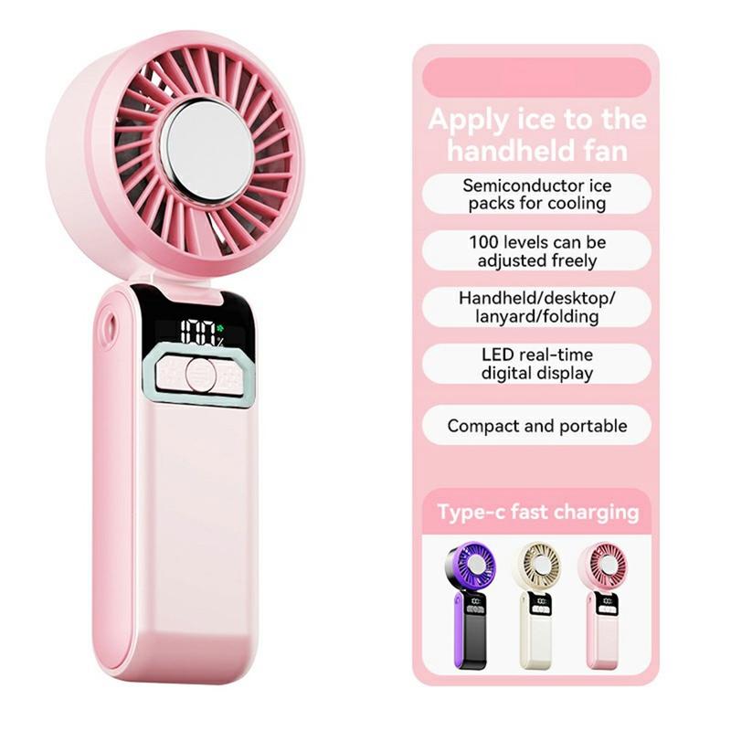 Ventilador portátil S2 - Ventilador de bolso recarregável com 100 velocidades, ecrã LED e design dobrável 3 em 1