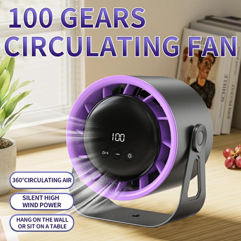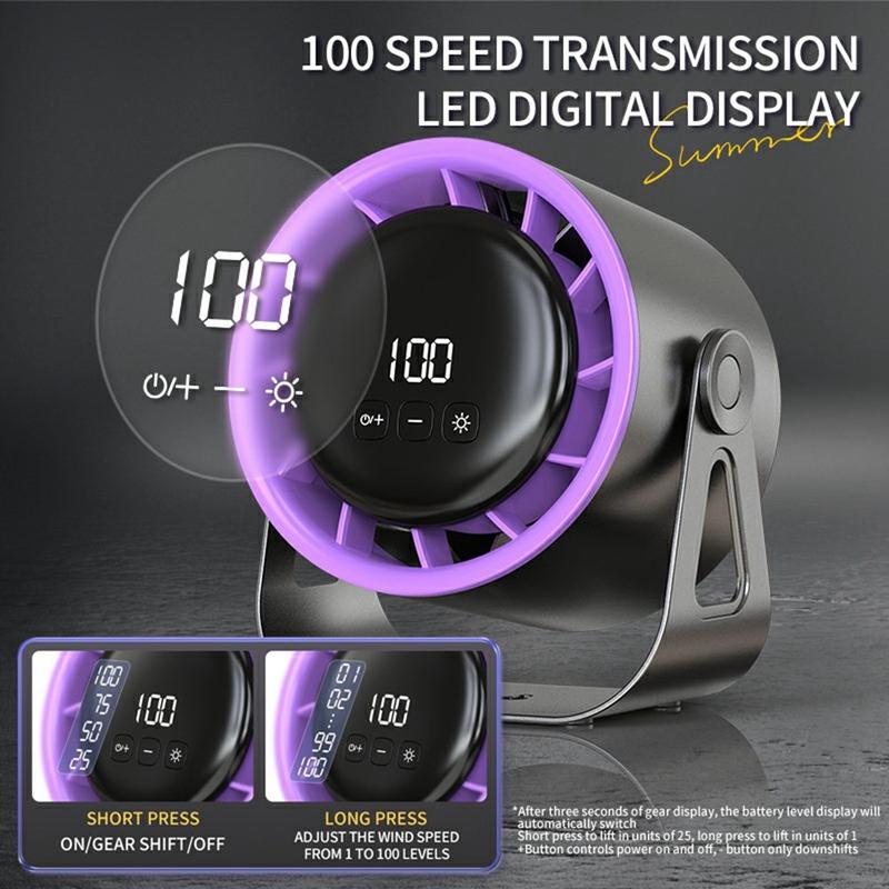 Ventoinha de secretária e de parede ajustável de 100 velocidades com ecrã digital e luz ambiente