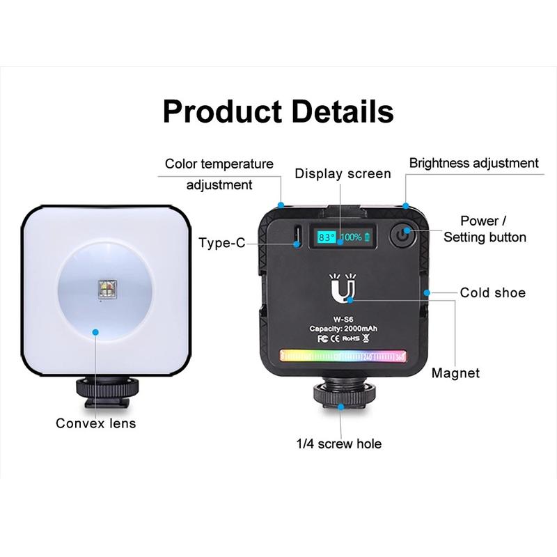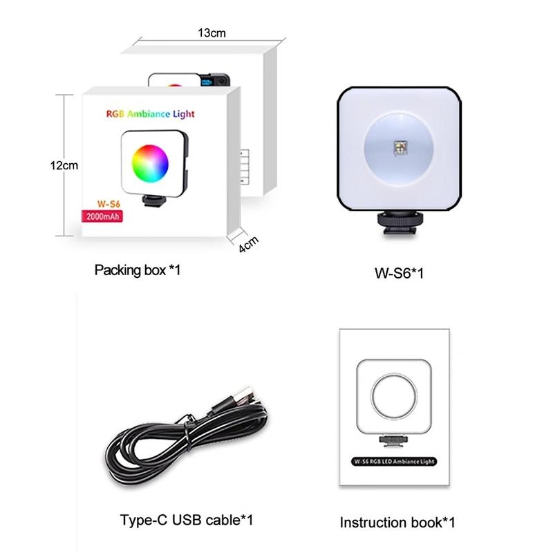 VLOGLITE W-S6 Full Color RGB LED Luz Fotográfica Luz de Câmara Luz de Atmosfera do Pôr-do-Sol Mini Luz de Preenchimento Magnético