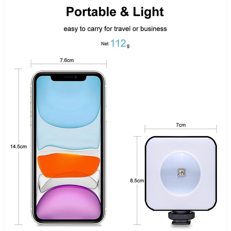 Com 45 LEDs, um ângulo de feixe de 60°, uma iluminação máxima de 800 lux a 0,3 m e um CRI elevado de 95+, esta luz de vídeo LED WS-6RGB de 6W ajuda a obter uma reprodução de cores mais precisa nas suas imagens