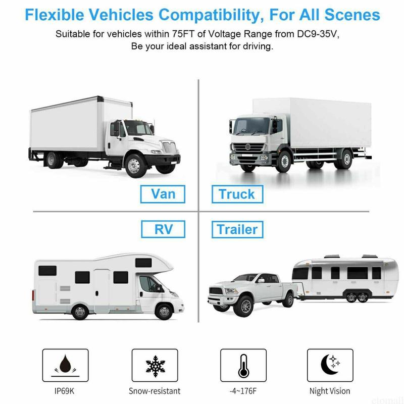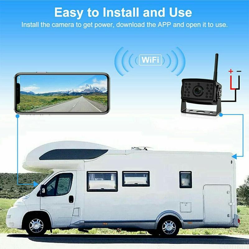 Melhore a segurança da carrinha, do camião ou da autocaravana com uma câmara HD sem fios que transmite uma visão cristalina de 170° para qualquer smartphone - sem cabos, sem ângulos mortos.