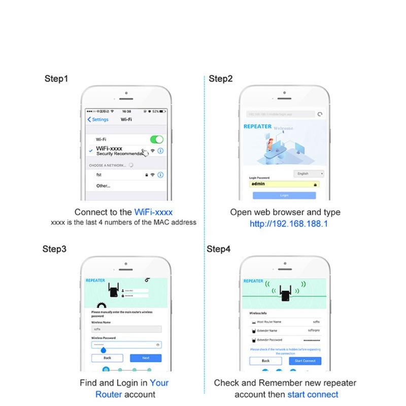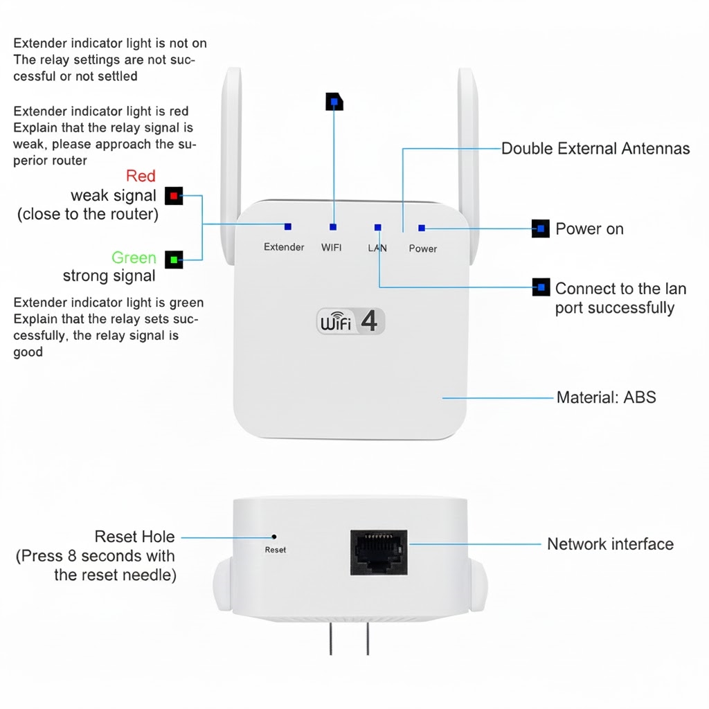 O extensor é fácil de configurar utilizando um menu guiado no ecrã disponível em inglês e chinês. É compatível com a maioria dos routers e suporta ligações para 30 ou mais dispositivos, incluindo PCs, smartphones, tablets, leitores multimédia e dispositivos domésticos inteligentes.