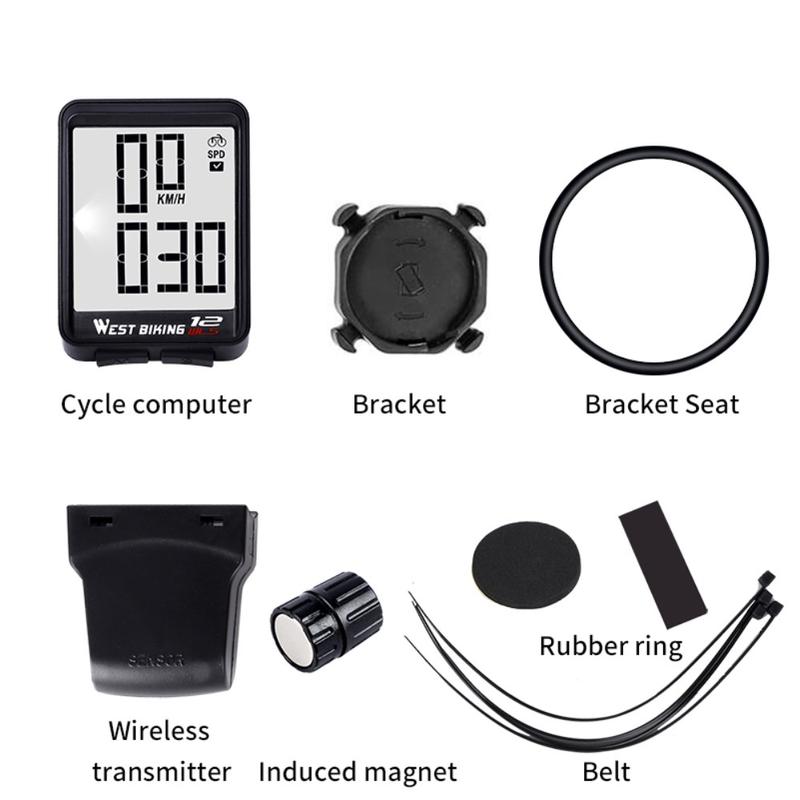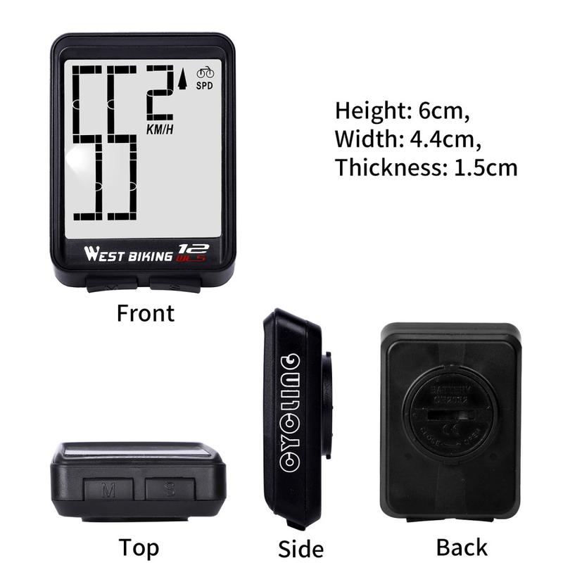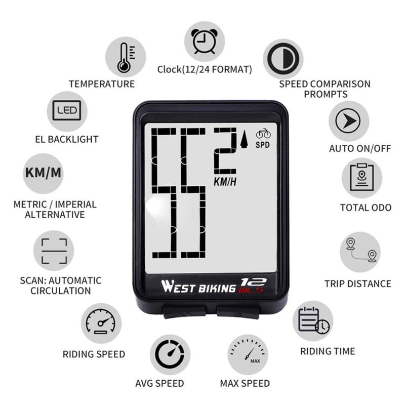 WEST BIKING MTB Road Bike Computador Ecrã retroiluminado à prova de água Velocímetro de ciclismo multifunções sem fios - Preto