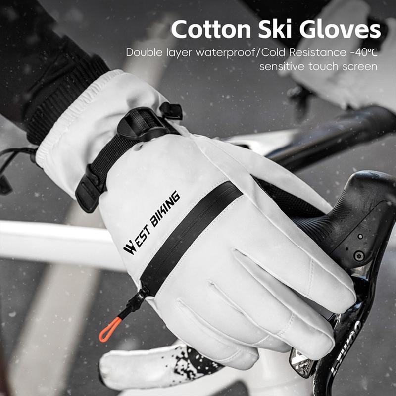 West Biking YP0211271 Luvas de esqui à prova de água - Luvas de ciclismo com ecrã tátil à prova de vento e bolso com fecho de correr