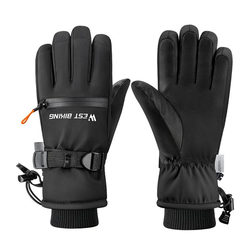 West Biking YP0211271 Luvas de esqui à prova de água - Luvas de ciclismo com ecrã tátil à prova de vento no inverno e bolso com fecho