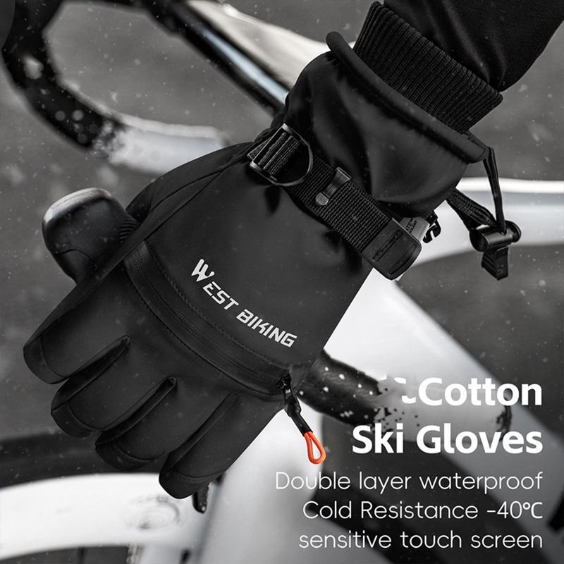 West Biking YP0211271 Luvas de esqui à prova de água - Luvas de ciclismo com ecrã tátil à prova de vento e bolso com fecho de correr
