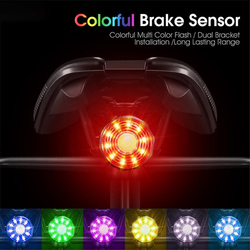Características: 6 modos/7 cores/sensor de vibração/iluminação durante a travagem