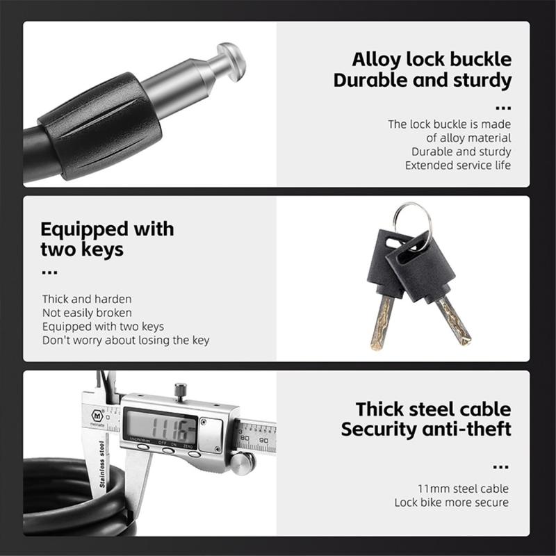 O cabo de aço é envolvido por uma camada exterior de material TPU, que protege o corpo do cadeado e não danifica a pintura da bicicleta
