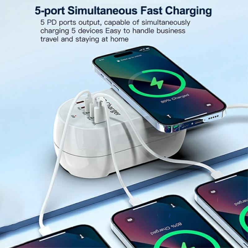 Suporta a saída simultânea de 5 portas PD, resolvendo facilmente o problema do carregamento de vários dispositivos