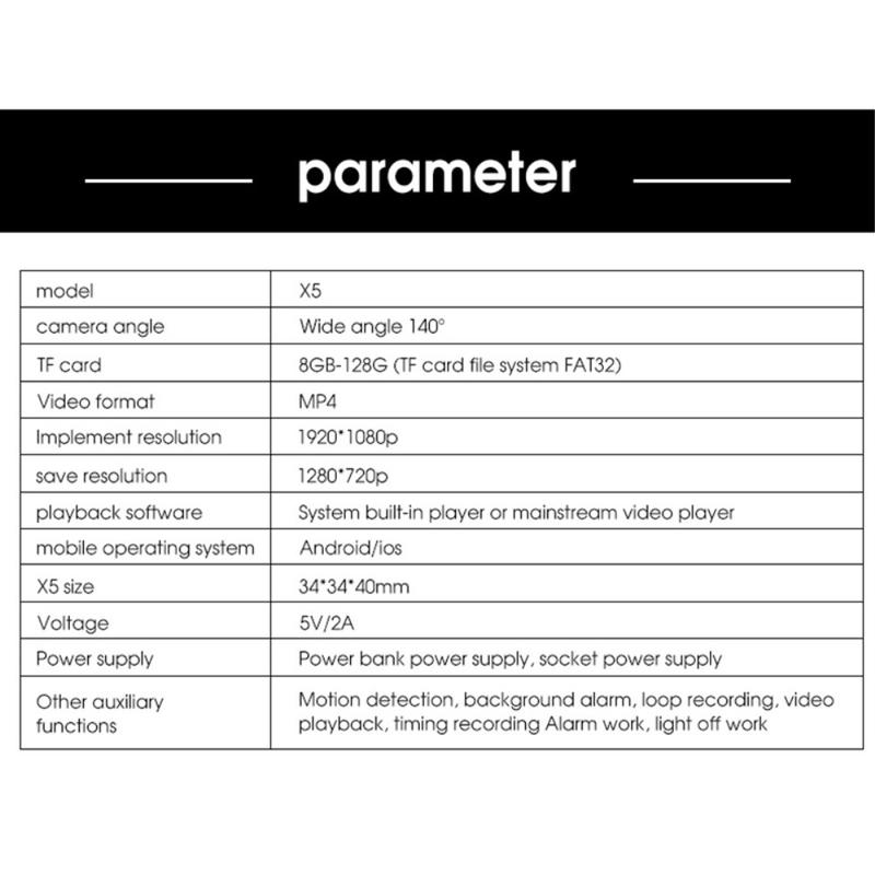 X5 Segurança doméstica Mini câmara WiFi 1080P AI Reconhecimento do corpo humano Câmara HD com visão nocturna