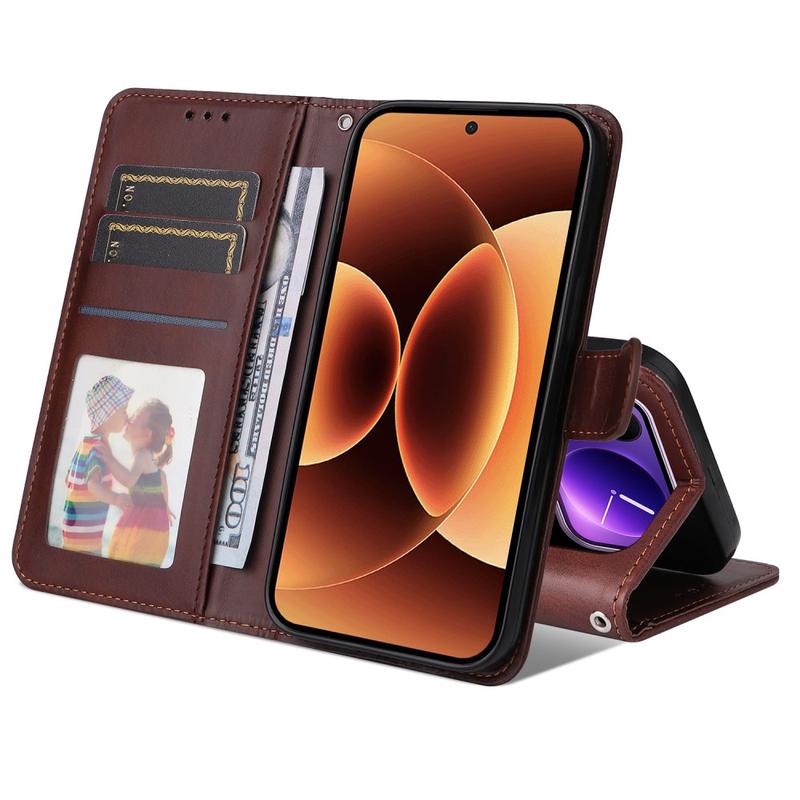 Dê ao seu novo Xiaomi 17 Pro Max um visual refinado e vintage enquanto substitui a sua carteira quotidiana. O exterior em poliuretano com textura Crazy Horse é combinado com uma estrutura em TPU que absorve os choques para proteger contra quedas e riscos, enquanto os bolsos inteligentes mantêm os cartões e o dinheiro organizados.