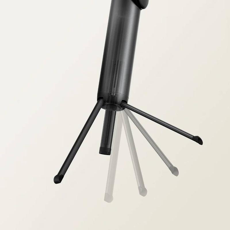 - Bastão telescópico: A haste extensível em liga de alumínio alcança até 52 cm para obter sempre o ângulo perfeito.
