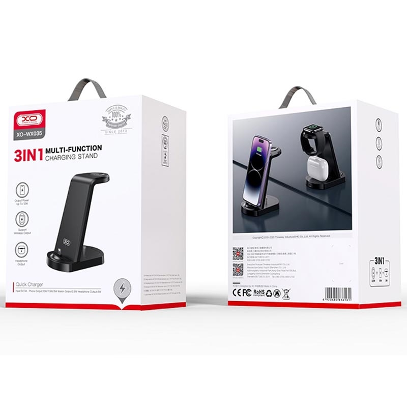Apresentamos o suporte de carregamento XO WX035, uma solução de carregamento 3 em 1 versátil, concebida para simplificar a sua experiência de carregamento de smartphones, auscultadores Bluetooth e Apple Watch. Este elegante suporte de carregamento é ideal para utilização em casa e no escritório, proporcionando uma forma prática e organizada de carregar os seus dispositivos essenciais. O suporte de carregamento XO WX035 está equipado com conectores Lightning, proporcionando uma solução de carregamento de 15 W para smartphones e auscultadores Bluetooth. Além disso, inclui um carregador indutivo compatível com o Apple Watch, oferecendo uma estação de carregamento completa. Com opções de saída de potência de 5W, 7,5W e 10W, este suporte de carregamento satisfaz as diferentes necessidades de carregamento de diferentes dispositivos, garantindo velocidades de carregamento eficientes e optimizadas.