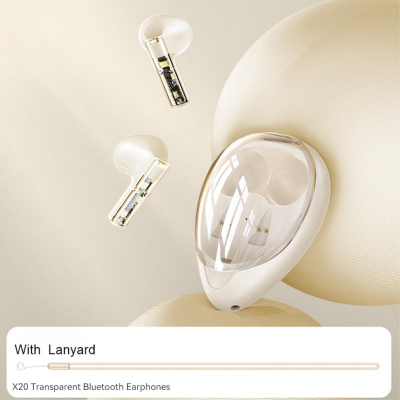 XUNDD X20 Auriculares Bluetooth TWS transparentes Auriculares estéreo sem fios para música com toque - Damasco